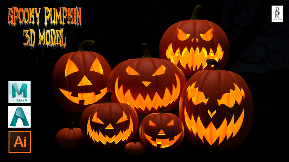 Spooky pumpkins Maya file, OBJ file with Arnold light setup for free.